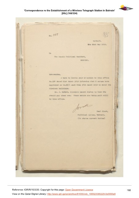'Correspondence re the Establishment of a Wireless Telegraph Station in Bahrain'