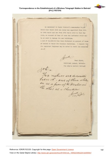 'Correspondence re the Establishment of a Wireless Telegraph Station in Bahrain'