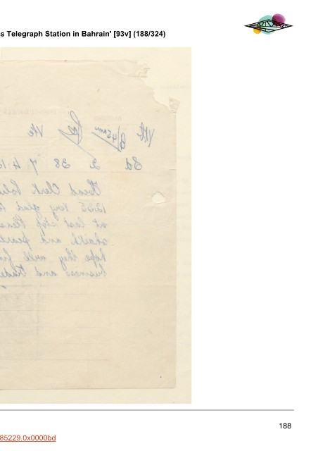 'Correspondence re the Establishment of a Wireless Telegraph Station in Bahrain' [93v] (188/324)
