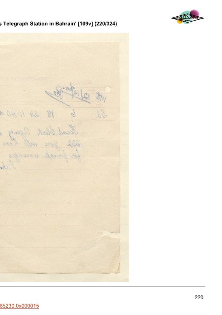 'Correspondence re the Establishment of a Wireless Telegraph Station in Bahrain' [109v] (220/324)