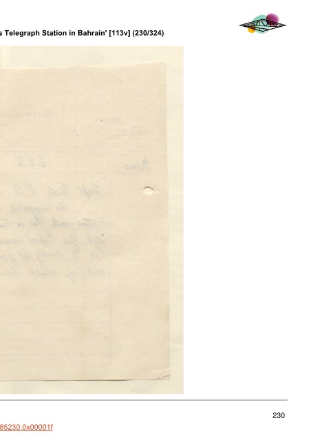 'Correspondence re the Establishment of a Wireless Telegraph Station in Bahrain' [113v] (230/324)