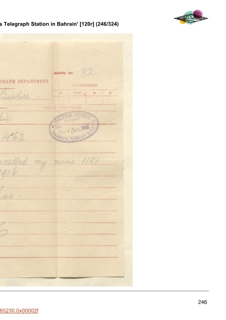 'Correspondence re the Establishment of a Wireless Telegraph Station in Bahrain' [120r] (246/324)