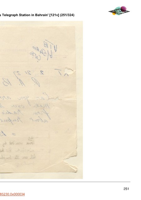 'Correspondence re the Establishment of a Wireless Telegraph Station in Bahrain' [121v] (251/324)