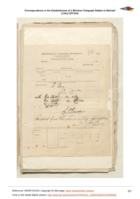 'Correspondence re the Establishment of a Wireless Telegraph Station in Bahrain'