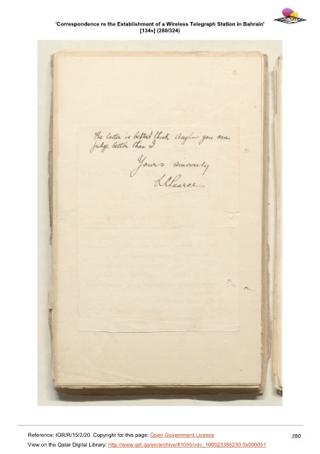 'Correspondence re the Establishment of a Wireless Telegraph Station in Bahrain'