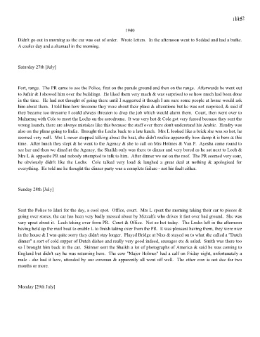 very upset about it. Loch taking over from PR. Court & Office. Not so hot today. The Lochs left in the afternoon