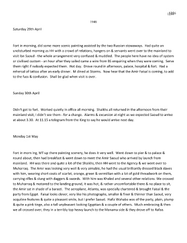 the Amir sat in shade of a barasti. The aeroplane, Atlanta, was specially chartered & brought Faisal & the