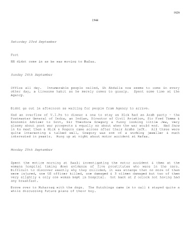 interested in pearls. Rung up at night about motor accident at Rafaa.