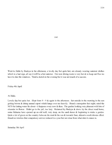 Went to Jidda by Budeya in the afternoon, a lovely day but quite hot, am already wearing summer clothes