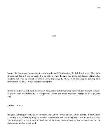 HH gave a dinner party at Rafaa, an enormous affair, about 30 USA officers, 2 USA admirals & the General.