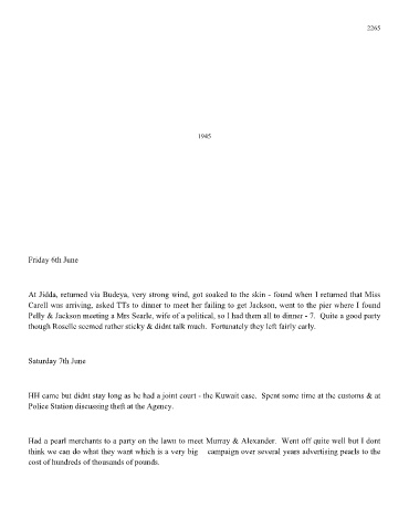 Pelly & Jackson meeting a Mrs Searle, wife of a political, so I had them all to dinner - 7. Quite a good party