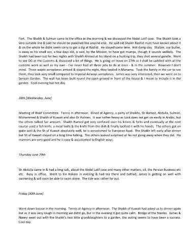 Fort. The Shaikh & Sulman came to the office in the morning & we discussed the Abdel Latif case. The Shaikh took a