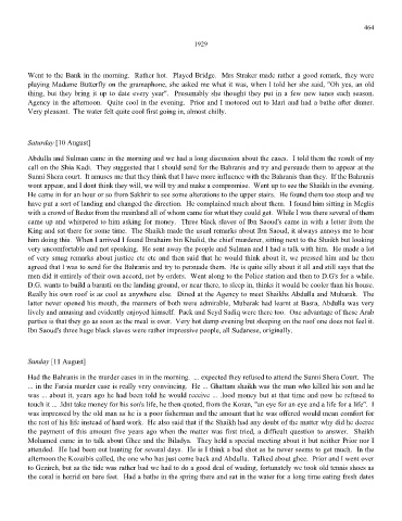 King and sat there for some time. The Shaikh made the usual remarks about Ibn Saoud, it always annoys me to hear