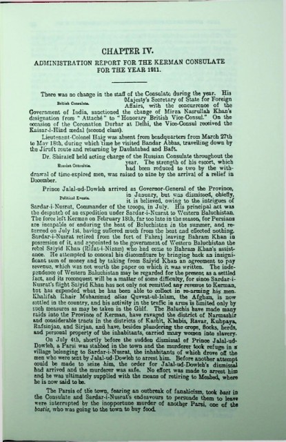 ADMINISTRATION REPORT FOR THE KERMAN CONSULATE