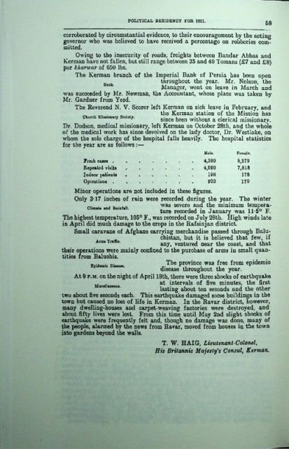 Dr. Dodson, medical missionary, left Kerman on October 28th, and the whole
