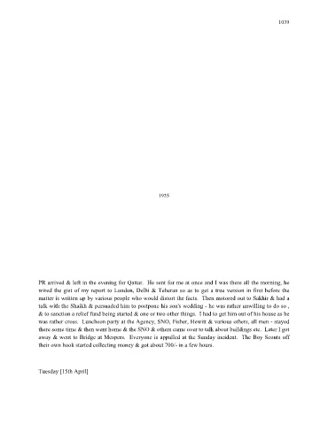 PR arrived & left in the evening for Qattar. He sent for me at once and I was there all the morning, he