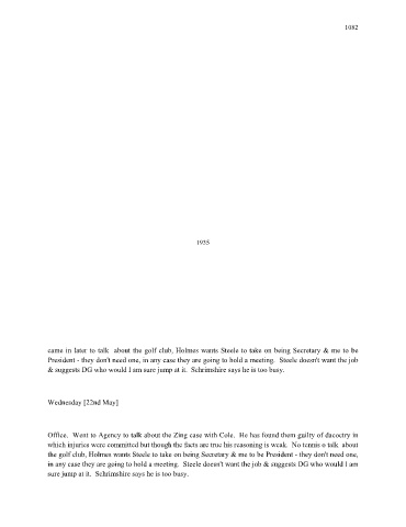 came in later to talk about the golf club, Holmes wants Steele to take on being Secretary & me to be