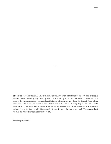 The Shaikh called on the SNO. I met him at Kozabera & we went off to the ship, the SNO said nothing &