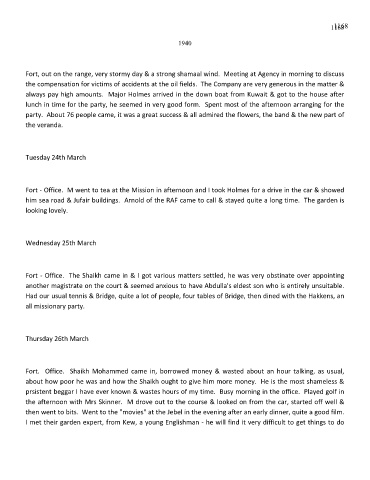 Fort. Office. Shaikh Mohammed came in, borrowed money & wasted about an hour talking, as usual,