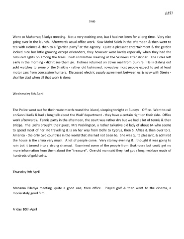 early in the morning - didn't see them go. Holmes returned on down mail from Bushire. He is dishing out