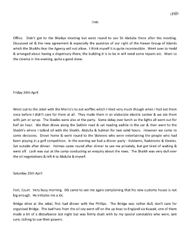 went off. Loch was out at the camp conducting an enquiry about the rows. The Shaikh was very dull over