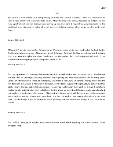 Bad case of a manumitted slave being forcibly seized by the Dawasir at Lakhdar. Sent in a report on it to
