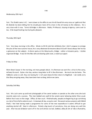 Fort. The Shaikh came in JC. I went down to the office to see him & found him very cross as I gathered that