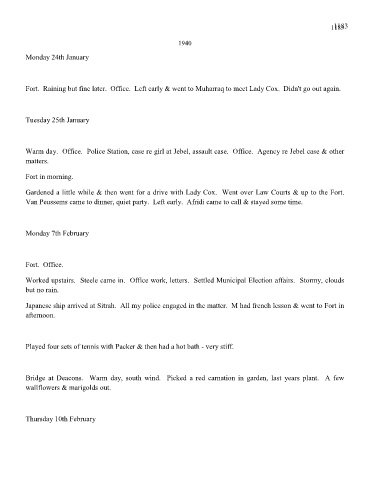 Warm day. Office. Police Station, case re girl at Jebel, assault case. Office. Agency re Jebel case & other