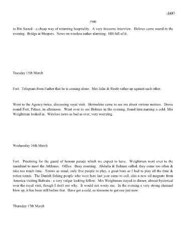 America visiting Bahrain - a very vulgar looking fellow. Mrs Weightman stayed to dinner, almost hysterical