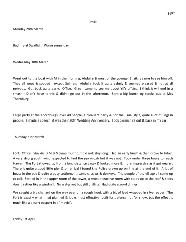 Went out to the boat with M in the morning, Abdulla & most of the younger Shaikhs came to see him off.