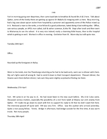 Fort in morning going over deportees, then came back late to breakfast & found Shs A & S here. Talk about