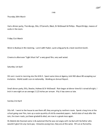 Small dinner party, DGs, Steeles, Holmes & Dr McDowall. Rain began at dinner time & it rained all night, l