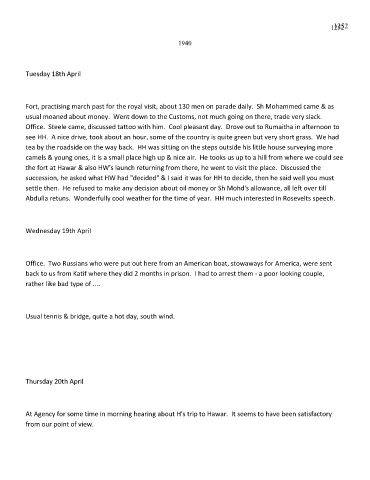 At Agency for some time in morning hearing about H's trip to Hawar. It seems to have been satisfactory
