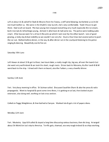 about Sh Mohd bin Isa's trip to America. Terrific gale, shamaal, sea very rough indeed & no ships working.