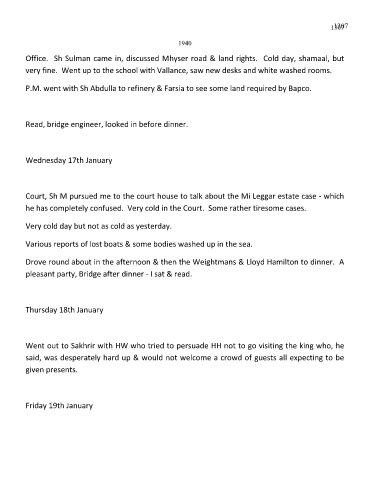 Office. Sh Sulman came in, discussed Mhyser road & land rights. Cold day, shamaal, but