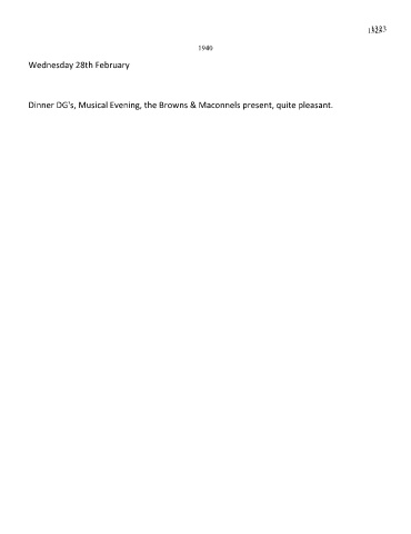 1323 1323 1940 Wednesday 28th February Dinner DG's, Musical Evening, the Browns & Maconnels present, quite pleasant.