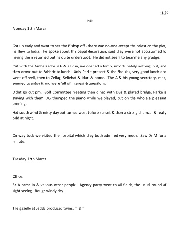 Sh A came in & various other people. Agency party went to oil fields, the usual round of