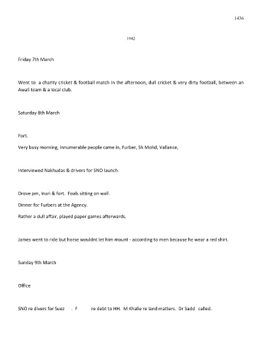 SNO re divers for Suez . F re debt to HH. M Khalie re land matters. Dr Sadd called.