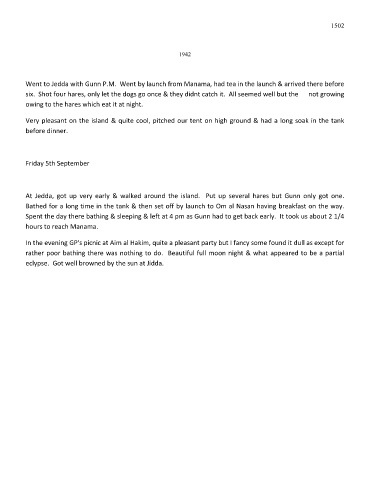 At Jedda, got up very early & walked around the island. Put up several hares but Gunn only got one.