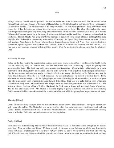 Biladya meeting.  Shaikh Abdulla presided.  He told us that he had news from the mainland that Ibn Saoud's forces