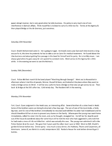 interference in Bahrain affairs. Think myself he is inclined to carry it a little too far. Tennis at the Agency &