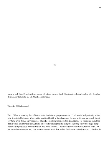 coy have given him, a very nice one. Stayed a long time talking to him & Abdulla. He suggested camel for
