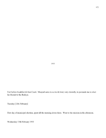 Fort before breakfast & then Court. Moayad came to se me & tried, very clumsily, to persuade me to elect