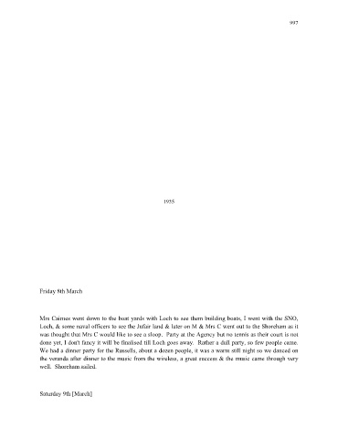 Mrs Cairnes went down to the boat yards with Loch to see them building boats, I went with the SNO,