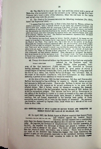 <111)—DISTURBANCES IV OMAN CAUSED BY SEYYID TURfCI AND TOHENTED BY