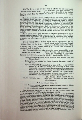 119. In January 1880 the Political Agent, Maskat, reported that on the