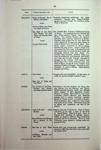 1838-84 Beni Yas of Aba Thabi Several raids and oounter-raids committed. In