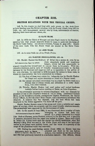 149. In 1873 the Chiefs of Shargah and AbuThabi wrote to the Resident,