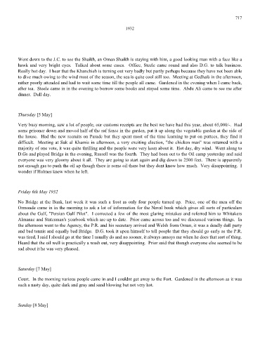 D.Gs and played Bridge in the evening, Russell was the fourth. They had been out to the Oil camp yesterday and said