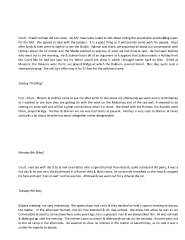 Court. Shaikh Sulman did not come. An RAF man came round to talk about rolling the aerodrome and building a pier